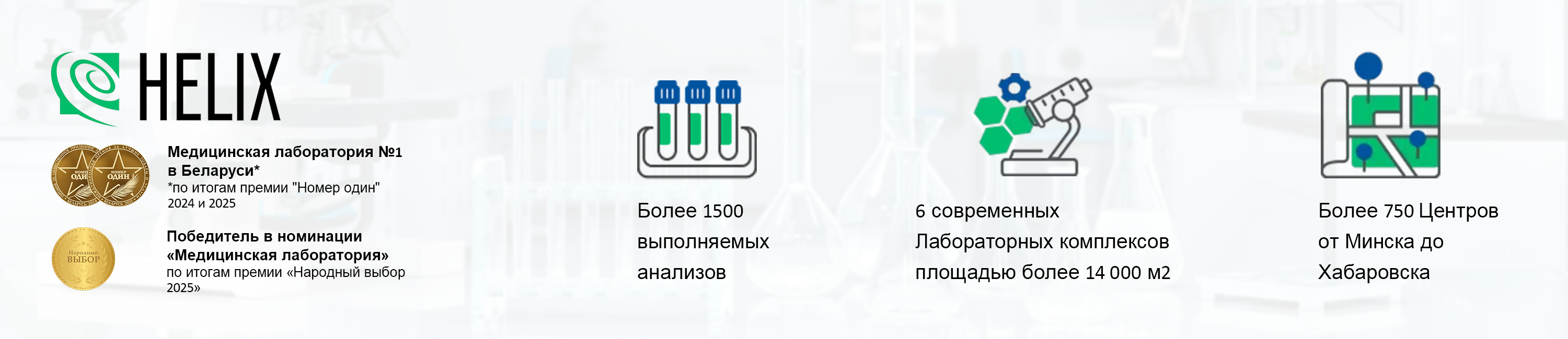 Мы сотрудничаем с международной лабораторной сетью Helix, что гарантирует высокий уровень точности, стандартизированные методики и доверие к каждому результату.